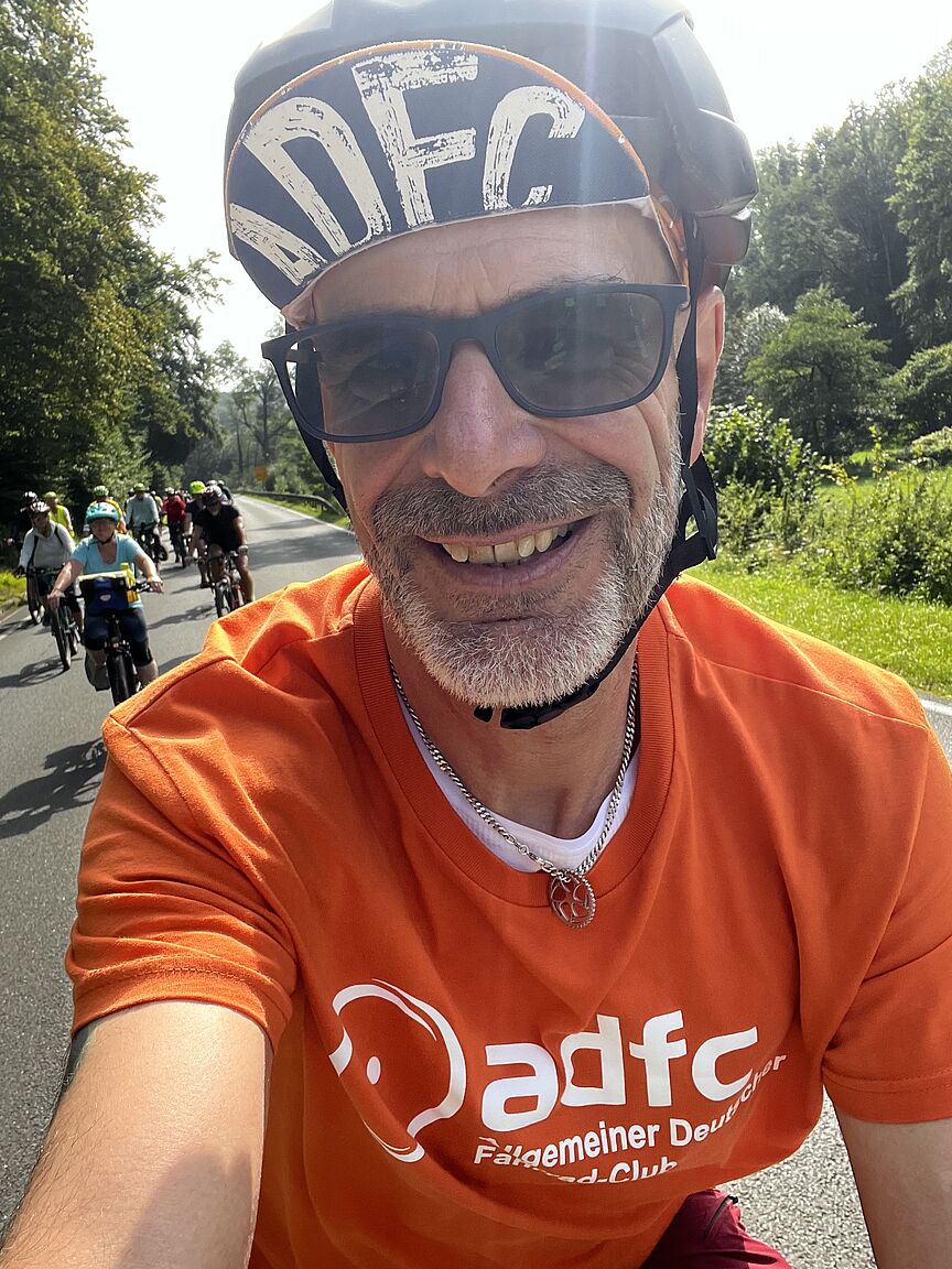 Nicht nur eine fünfstellige Anzahl von Kilometern auf einem von seinen unzähligen Rädern unterwegs (die übrigens alle Namen haben). Nein, er engagiert sich eben auch im ADFC (1. Vorsitzender des ADFC Rhein-Erft, Vorsitzender des ADFC NRW).
