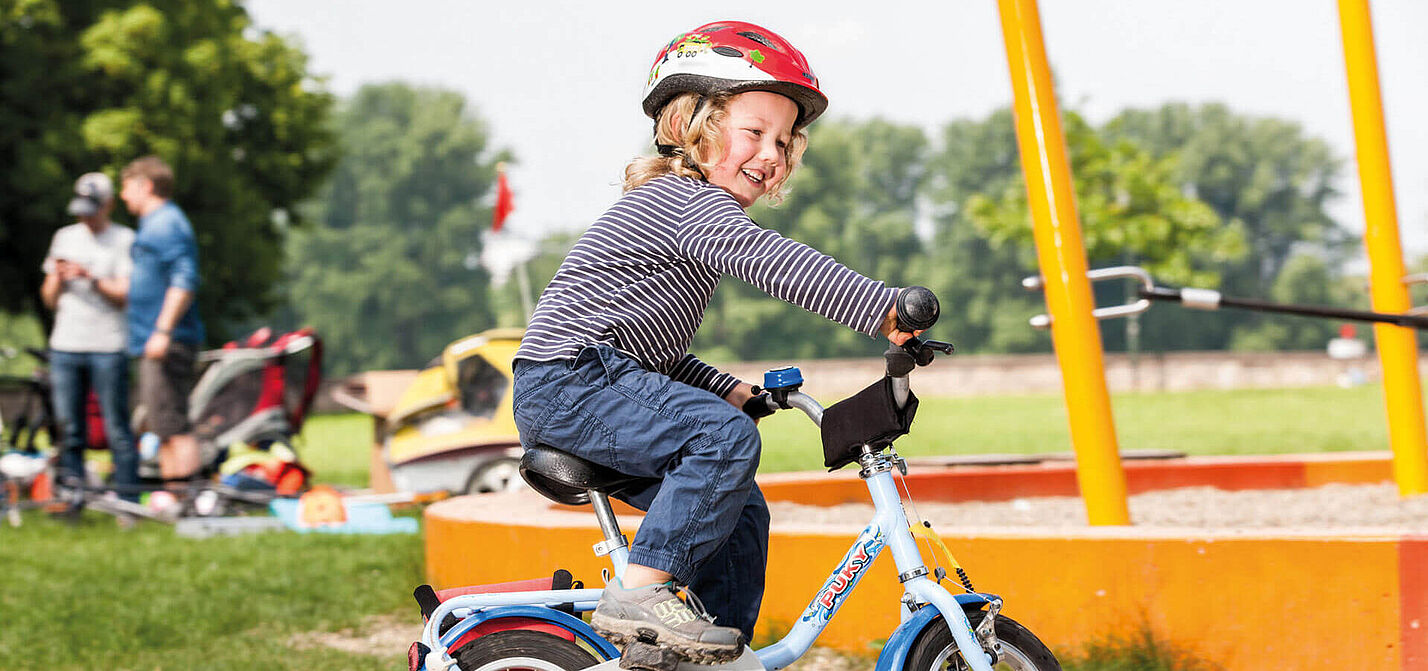 Bevor sich Kinder in den Straßenverkehr wagen, sollten sie auf Plätzen ohne Verkehr üben. Hier können sie sicher und stressfrei motorische Fähigkeiten erlernen und das Radfahren verinnerlichen.